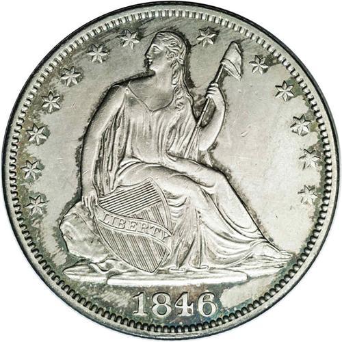 1846 50C Medium Date MS62 NGC. Freckles of apple-green 1846[50C] Medium Date MS62 NGC.