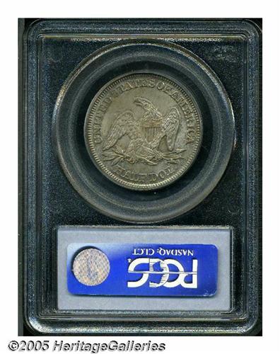 <B>1846<50C> Tall Date MS64 PCGS.</B></I> Lovely original earth tones adorn each side of this well preserved, satiny near-Gem, yielding to sunset yellow and red patina near the obverse peripheries. The stars on the right side of the obverse are generally weak, and a rather thick die crack (as struck) resides on the upper reverse rim, extending through the TE in STATES. The smooth surfaces are nearly pristine, except for two or three small, scattered milling marks.