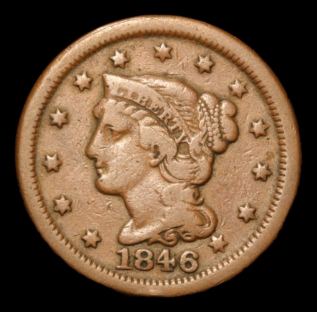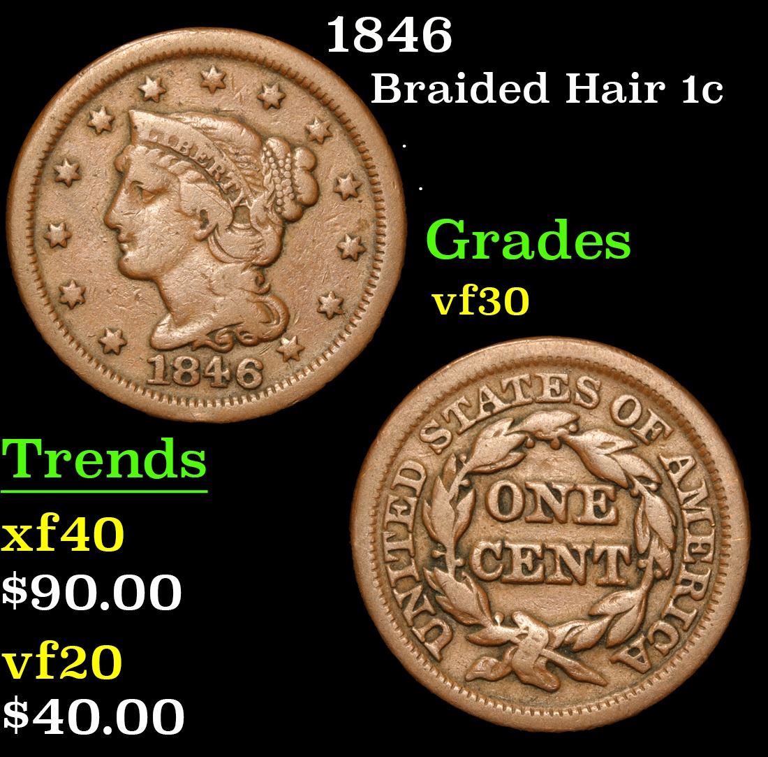 1846 . . Braided Hair Large Cent 1c Grades vf++.