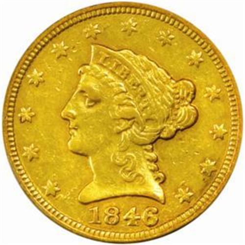 1846-C Liberty Quarter Eagle. Winter 7-F, the only known dies. AU-50 (PCGS).
