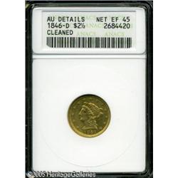 <B>1846-D $2 1/2 --Cleaned--ANACS. AU Details, Net XF45.</B></I> Variety 7-H. Sharply struck with deep greenish-yellow gold surfaces. Light cleaning lines are visible at the lower obverse. Otherwise, this is a wholesome and desirable example. Lot:7560