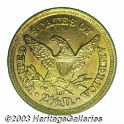 1846-D $2 1/2 MS62 PCGS. Variety 7-H. (per Doug Winter's second edition and revised attribution system). Reverse of 1843. Normal mintmark. One of four known die varieties for the year and apparently rare in all grades.RARITY INFORMATION: With a mintage of nearly 20,000 pieces, the 1846-D is one of the more available Dahlonega quarter eagles. There are 175-200 coins known with at least three-quarters of these in the Very Fine to Extremely Fine grade range. Low-end AU coins are reasonably easy to find, but the 1846-D becomes a challenging issue in the higher AU grades and a major rarity in Uncirculated. Only four or five Mint State coins are currently known with the finest a PCGS MS63 in the Duke's Creek Collection. The Green Pond coin is regarded as the second finest known.STRIKE: The obverse is absolutely fully struck with no weakness on the hair or the denticles. On the reverse, some lightness shows on the denticles from 10 o'clock to 12 o'clock. The central reverse is bold and there is just the slightest weakness on the eagle's left (facing) leg.SURFACES: A few very fine hairlines (not from cleaning) can be seen on the obverse, but the fields are exceptionally clean for an issue that is almost always seen with severe marks. There is an easily-missed mint-made reverse planchet flake at the base of the TA in STATES while the rest of the reverse is quite clean.LUSTER: Rich, frosty luster shows on both the obverse and the reverse. The luster is original and has not been impaired. It is extremely hard to locate an 1846-D quarter eagle with luster that is as original as seen on this example.COLORATION: The centers are a medium yellow-gold and are framed by deeper coppery-rose shadings at the margins. The color has been lightened just a bit but is otherwise original and attractive. This is another so-called common date Dahlonega quarter eagle that has become just about impossible to find with color that has not been stripped by repeated cleanings and/or processing.EYE APPEAL: This is a lovely coin for the date and grade. It is much sharper struck than usual and has good surfaces and luster. The color is original enough to satisfy even the most discriminating specialist. This is certainly among the most appealing 1846-D quarter eagles from an aesthetic--as well as a technical--standpoint.COMPARABLES: We have no records of a third-party certified MS62 or better 1846-D quarter eagle having ever been sold at auction. We auctioned a PCGS MS61 as lot 4676 in January 2003 and that coin realized $8,913. The same coin had previously realized $10,925 as lot 157 in Bowers and Merena's November 2000 Bass IV Sale.PEDIGREE: Obtained from Doug Winter in January 2000; earlier from Bruce Kutcher. This is the plate coin in the second edition of "Gold Coins of the Dahlonega Mint, 1838-1861," and it is listed in the current Condition Census as the second finest known. Important notice: Heritage usually auctions material at the rate of 200-250 lots per hour. On some occasions eBay Live bid software or the Internet may not be able to keep up with the pace of the auction. We recommend placing a realistic absentee bid now as insurance to avoid disappointment. Occasionally the auctioneer may eliminate or reject an eBay Live bid, and the auctioneer may also reopen a lot after the close of the eBay live bidding (usually because we missed an audience bid), and may reject your bid even if it shows you as the winning bidder. By bidding via eBay Live, you agree that Heritage may award the lot to another bidder at its sole discretion under the circumstances described above or any other reasonable circumstances. Also please note that all Heritage lots purchased through eBay Live carry a 20% Buyer's Premium. Please make sure you read the Terms and Conditions before you bid.