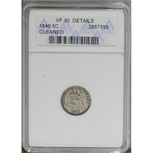 1846 H10C --Cleaned--ANACS. VF30 Details. Wedged betwee 1846[H10C]--Cleaned--ANACS. VF30 Details.