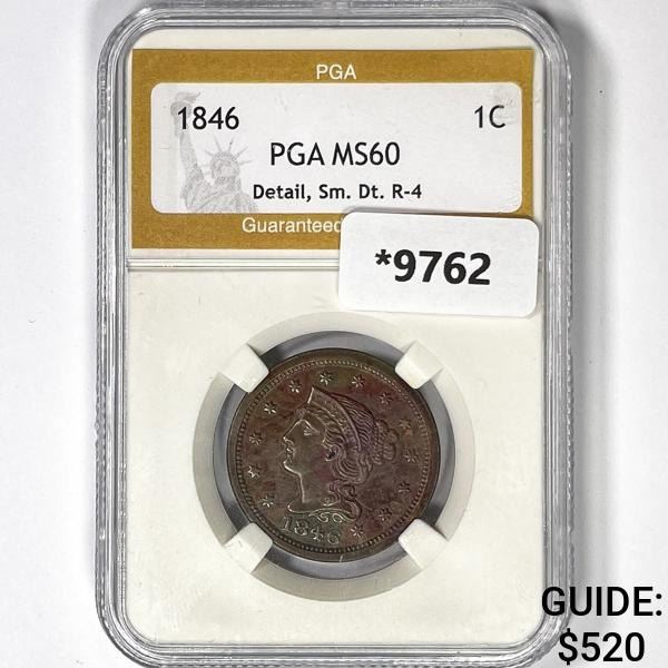 1846 Large Cent PGA-MS60 Detail, Sml Dt, R-4