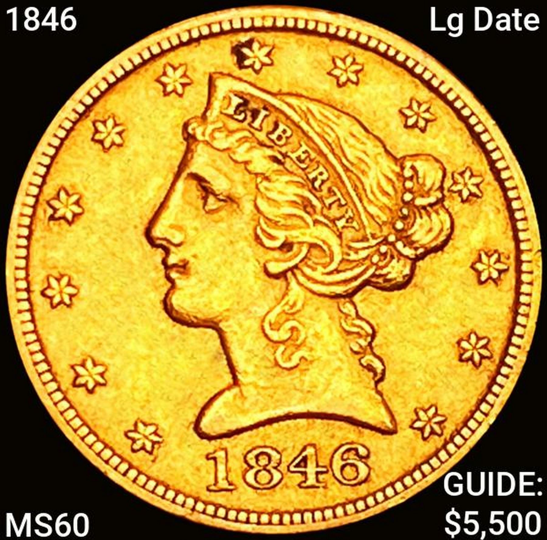 1846 Lg Date $5 Gold Half Eagle UNCIRCULATED