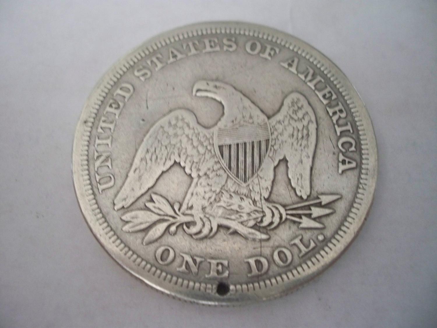 1846 Liberty Seated (no motto) Silver Dollar - VG - hole at top and some scratches