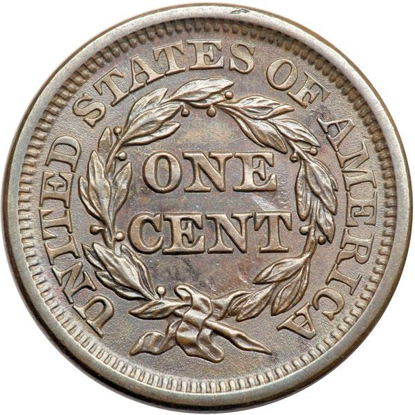1846 N-14 R2 Tall Date Repunched 1 AU58. Glossy medium brown and chocolate with a small swipe of darker olive brown toning over star 12 and hints of bluish steel overtone in protected areas of the reverse. Just a hint of rub on the highest points from mint state. The best identifying mark is a tiny planchet void on the rim over the second S in STATES, as struck. Rare LDS, die state b, with a rim cud break under the 18. The repunching over the base of the 1 is clear. Tied for CC#6 for the die variety but finest of only 7 known in this die state. Removed from an NGC slab graded MS65 Brown (NGC label included, and it shows the attribution). DWH #2530.