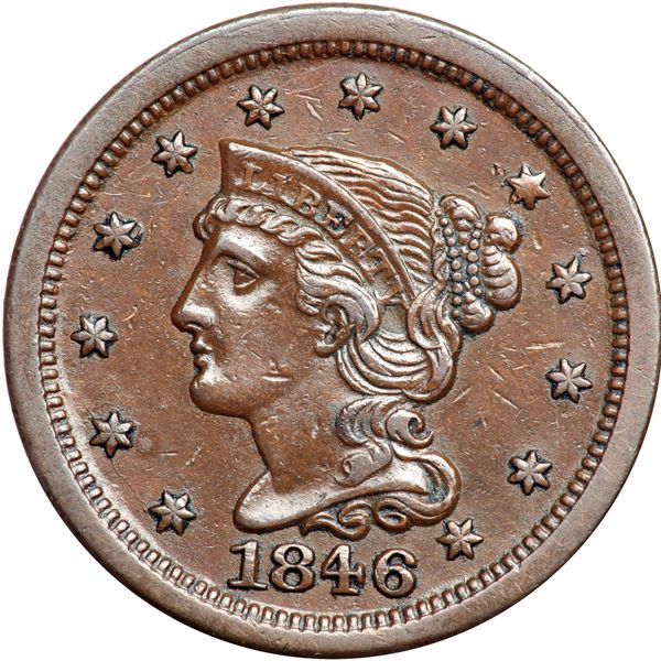 1846 N-15 R4 VF30+. Close to VF35 but there are a few too many minor nicks on the obverse for the higher grade. Otherwise this piece is very attractive. Glossy light chocolate brown. MDS, die state b.