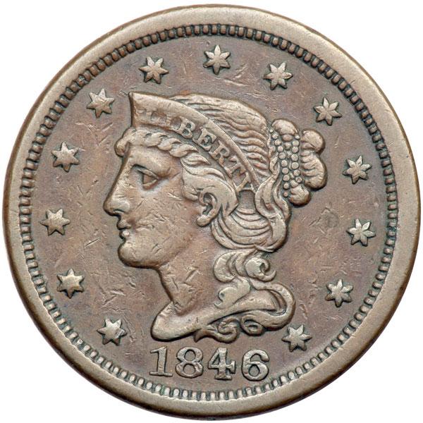 1846 N-18 R1 VF20. Slightly sharper with some light nicks scattered about the obverse, the strongest of these located on the center of the neck. Glossy chocolate brown with light brown highpoints. EDS, die state a, with an uncracked reverse. DWH #1014.