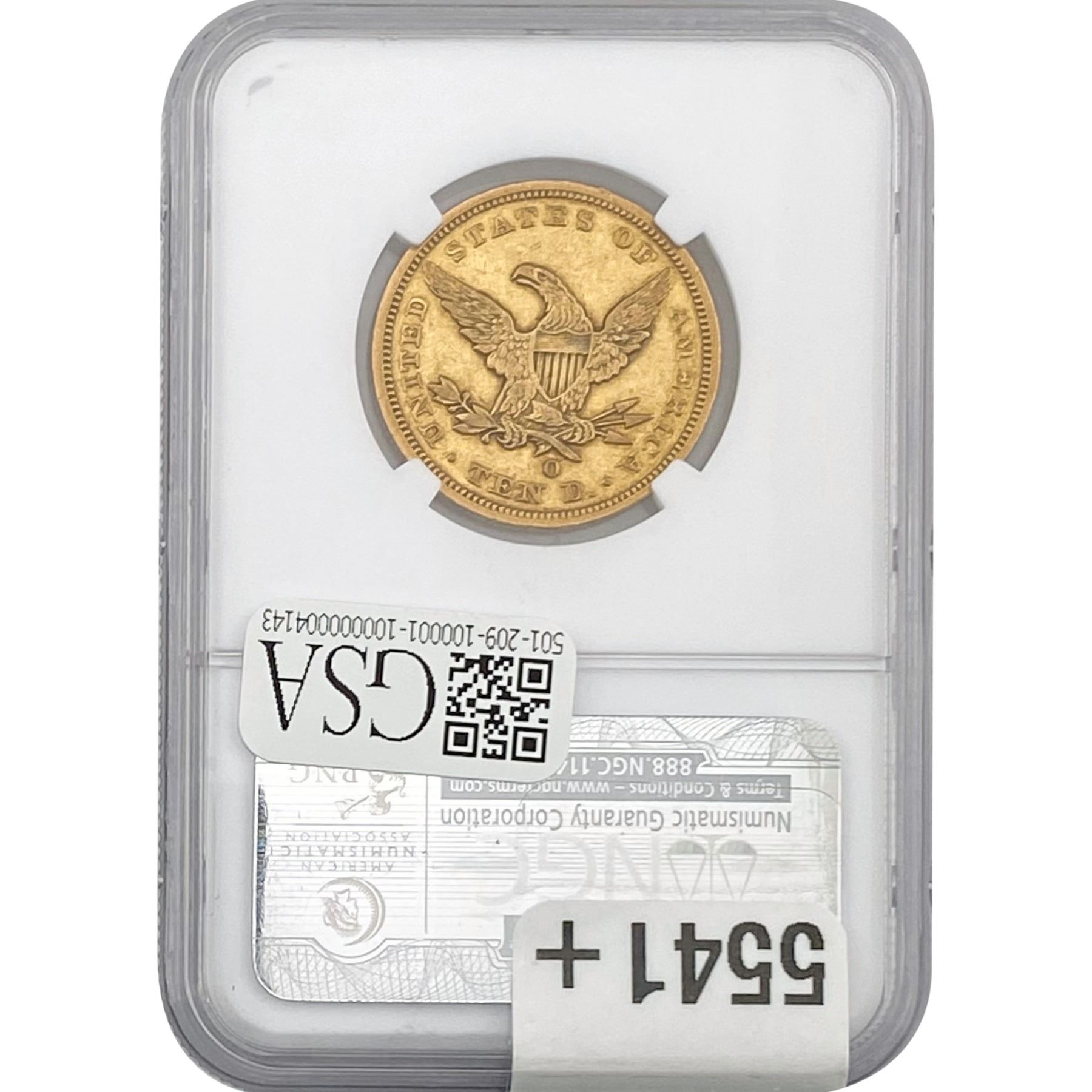 l. All non-certified coins and currency are guaranteed genuine, but are not guaranteed as to grade, since grading is a matter of opinion, an art and not a science, and therefore the description rendered by GSA or any third-party grading service may not agree with the opinion of others (including trained experts), and the same expert may not grade the same item with the same grade at two different times. GSA may, but is not obligated to, express an opinion as to non-certified numismatic items, in GSA’s opinion, or by its employees’ experience and the current interpretation of the American Numismatic Association’s standards as of the date the catalog was prepared. There is no guarantee or warranty expressed or implied that the grading opinions utilized by GSA, if any, will meet the standards of any grading service at any time in the future.