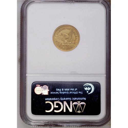 <B>1846-O<$2 1/2> AU55 NGC.</B></I> This issue becomes elusive in higher grades. This Choice AU example has traces of weakness on the eagle's left (facing) leg, but its orange-gold surfaces retain almost all of their original luster.