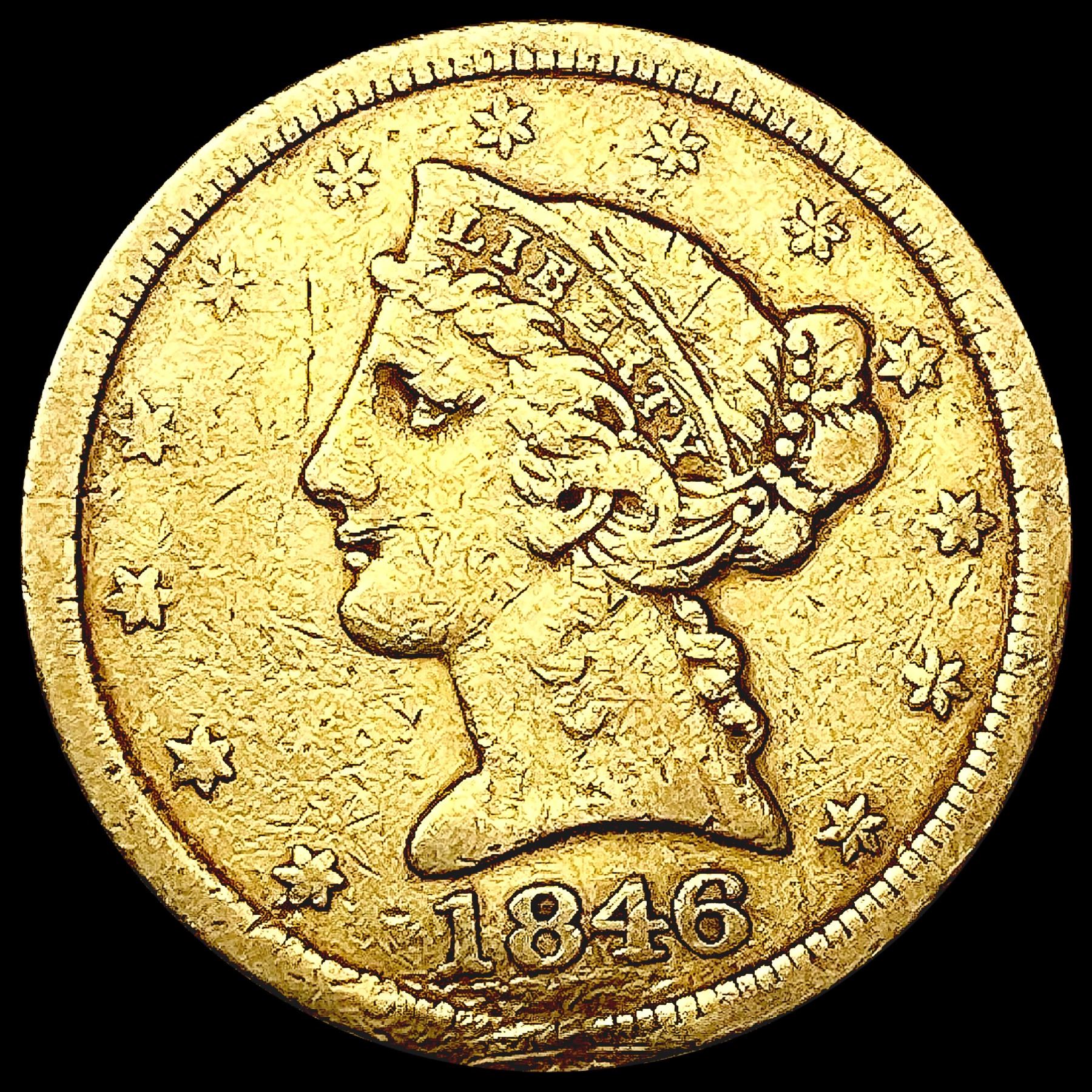 1846-O $5 Gold Half Eagle HIGH GRADE