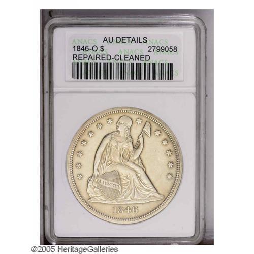 1846-O S$1 --Repaired, Cleaned--ANACS. AU Details. This 1846-O[S$1]--Repaired, Cleaned--ANACS. AU De