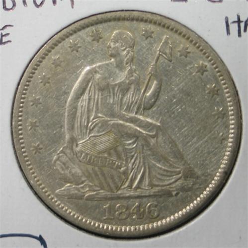 1846-O SEATED LIBERTY HALF DOLLAR. Medium date. AU.