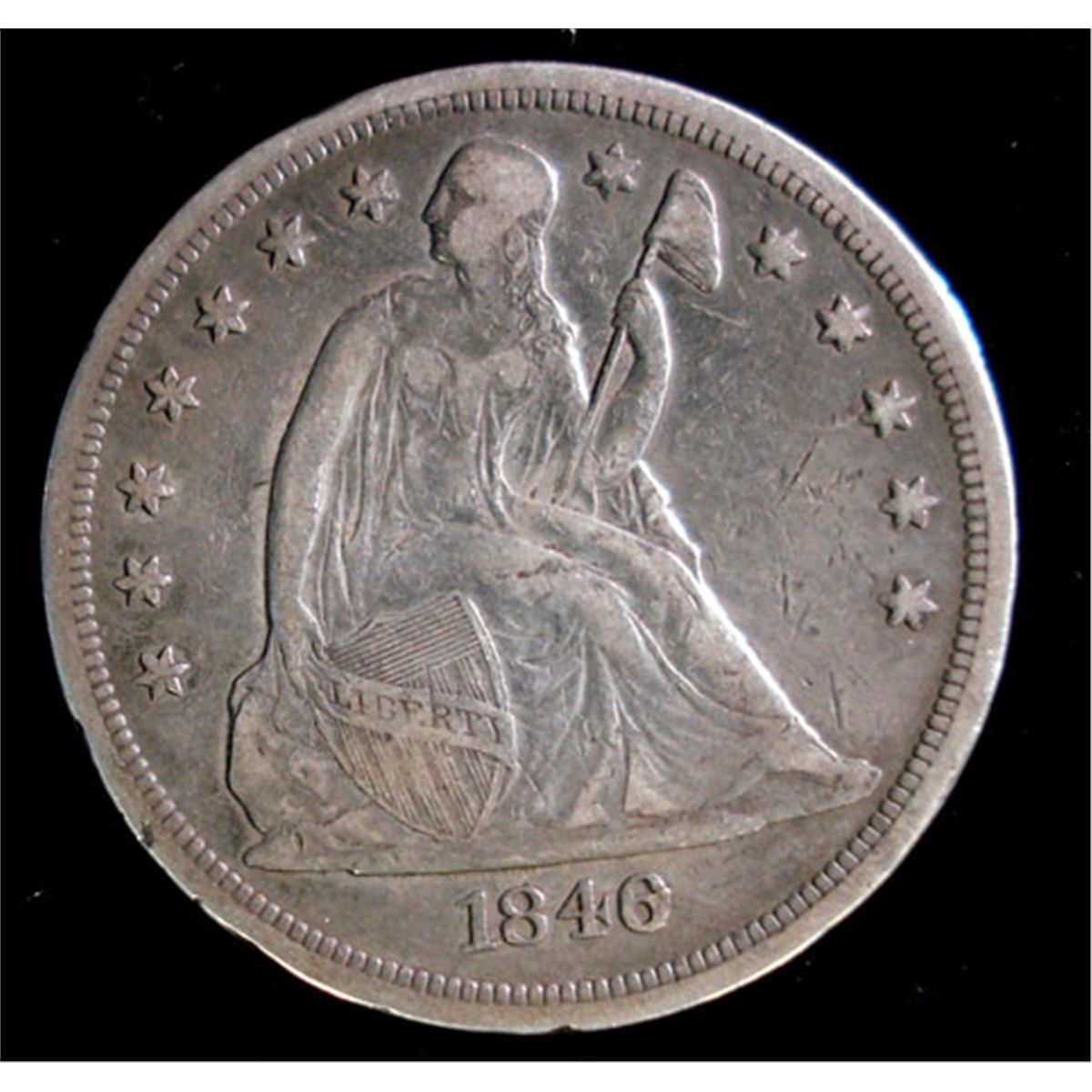 1846-O SEATED LIBERTY SILVER DOLLAR, NICE XF ORIGINAL