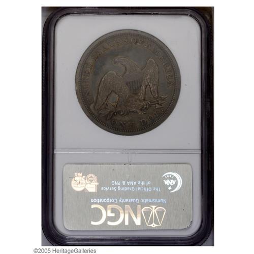1846 S$1 AU50 NGC. A deep coating of charcoal-brown to 1846[S$1] AU50 NGC.