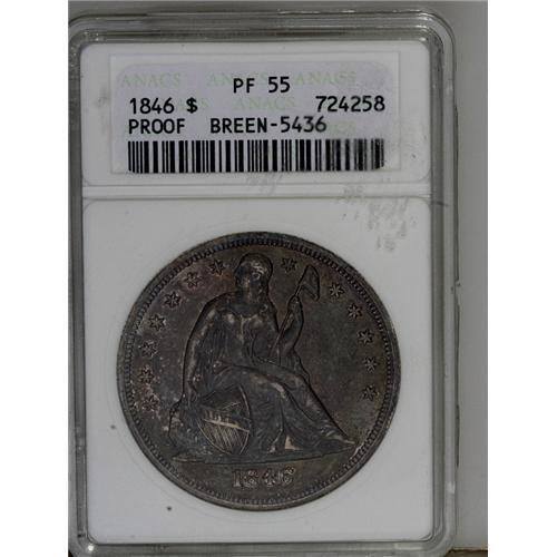 1846 S$1 PR55 ANACS. Breen-5436, Recut Date. Prior to