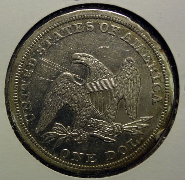 1846 SEATED DOLLAR XF-AU RIM BUMPS REV, SCRATCHES REV, A BARGAIN FOR YOU!