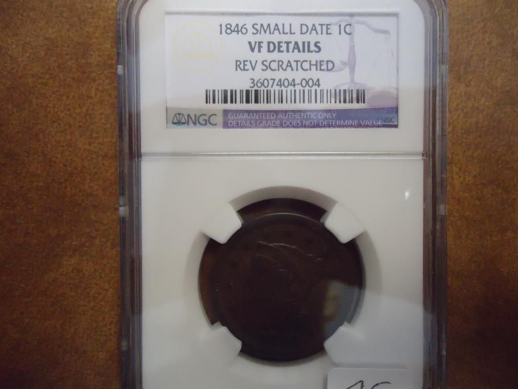 1846 SMALL DATE US LARGE CENT NGC (VF DETAILS)