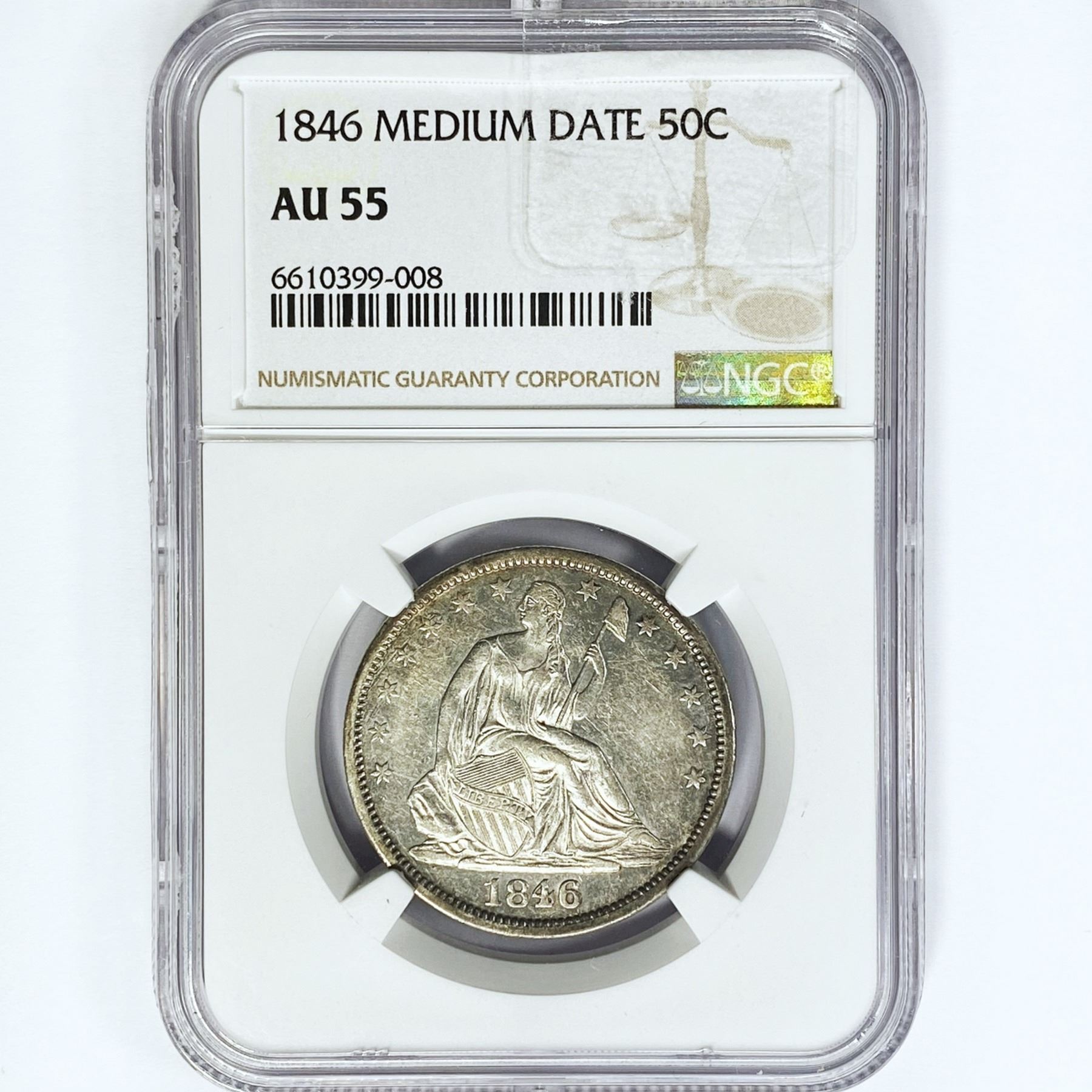 1846 Seated Liberty Half Dollar NGC AU55 Med. Dt.
