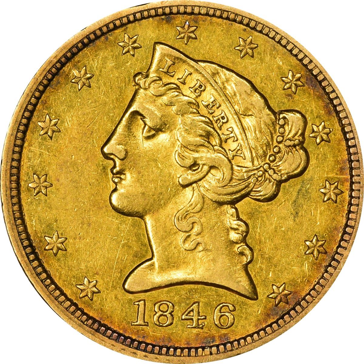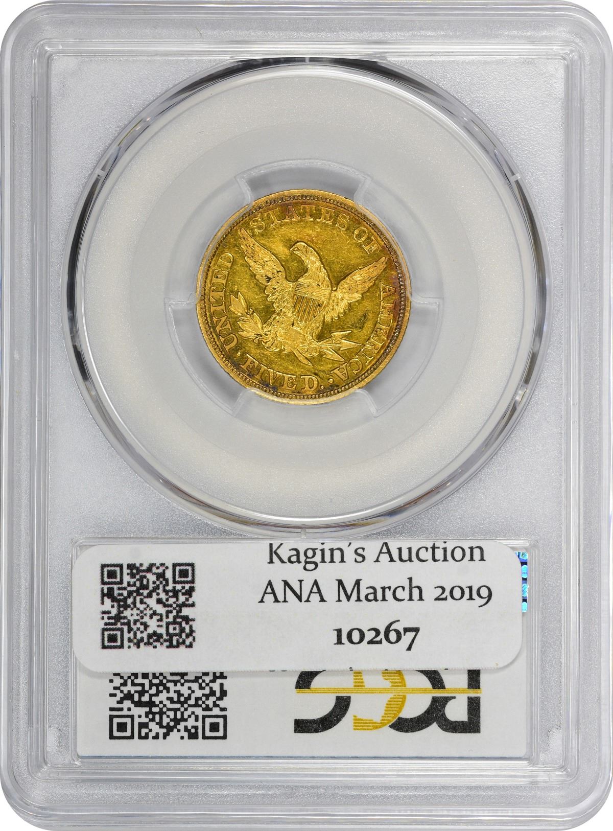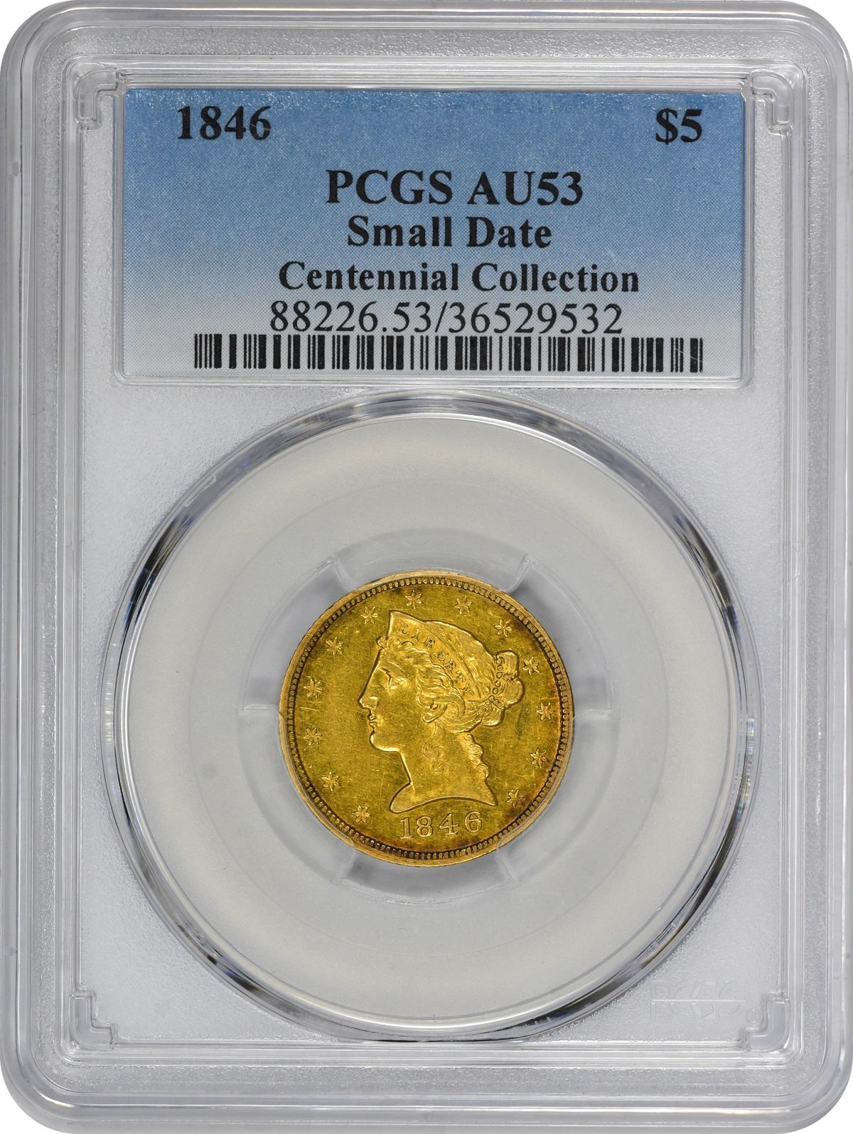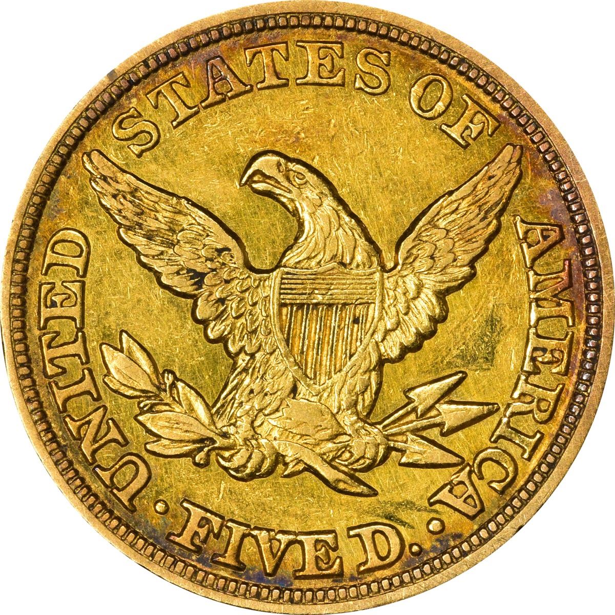 Deep yellow-gold with appealing luster, rich orange halos at the rims, and prooflike reflectivity in the fields. Raised diagonal die line at Liberty’s eye. Somewhat scarcer than its Large Date counterpart. Choice for the grade and mark-free to the unassisted eye.