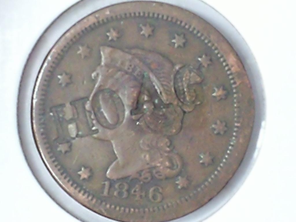 1846 US LARGE CENT COUNTER STAMPED HOAG