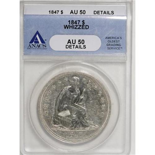 <B>1847 $1 --Whizzed--ANACS. AU50 Details.</B></I> NGC Census: (26/208). PCGS Population (58/184). Mintage: 140,750. Numismedia Wsl. Price for NGC/PCGS coin in AU50: $565. (#6934)<BR><BR><B>Coin Engraver:</B> Christian Gobrecht<BR><BR><b>Shipping:</b> Coins & Currency (<a target="_blank" href="http://www.heritageauctions.com/common/shipping.php">view shipping information</a>)
