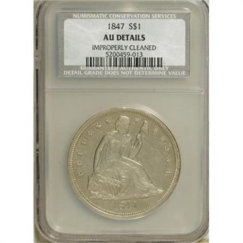 <B>1847 $1 --Improperly Cleaned--NCS. AU Details.</B></I> NGC Census: (0/0). PCGS Population (0/0). Mintage: 140,750. (#6934)<BR><BR><B>Coin Engraver:</B> Christian Gobrecht<BR><BR><b>Shipping:</b> Coins & Currency (<a target="_blank" href="http://www.heritageauctions.com/common/shipping.php">view shipping information</a>)