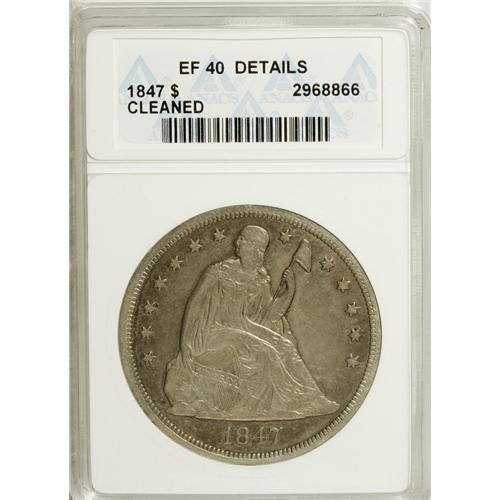 <B>1847 $1 --Cleaned--ANACS. XF40 Details.</B></I> NGC Census: (16/261). PCGS Population (25/299). Mintage: 140,750. Numismedia Wsl. Price for NGC/PCGS coin in XF40: $333. (#6934)<BR><BR><b>Shipping:</b> Coins & Currency (<a target="_blank" href="http://www.heritageauctions.com/common/shipping.php">view shipping information</a>)