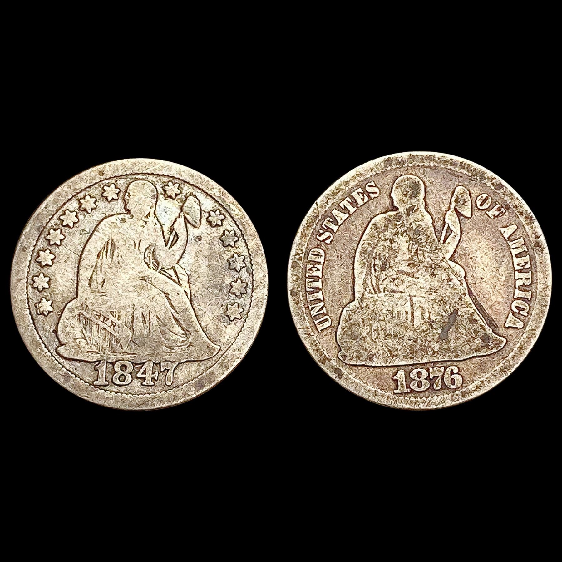 1847-1876 [2] Seated Liberty Dime HIGH GRADE