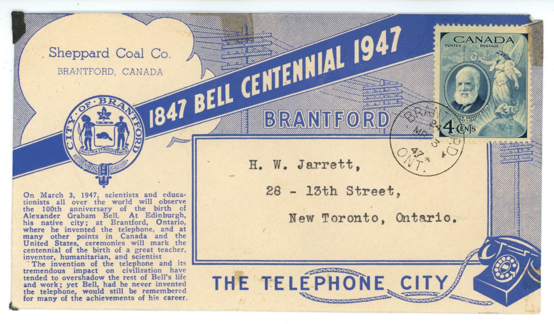 1847 - 1947 Alexander Graham Bell Centennial First Day Cover with 1947 4 Cents Bell Stamp.