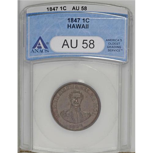 1847 1C Hawaii Cent AU58 ANACS. 2-CC2, the most common