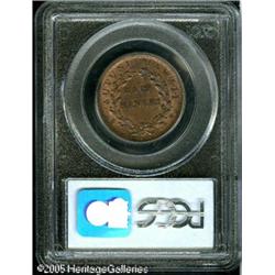 <B>1847 1C Hawaii Cent MS63 Red and Brown PCGS.</B></I> Crosslet 4, M. 2CC-2. The original orange color has acquired lilac hues and a few small spots in selected areas. A sharply struck piece with a tick on the right jaw, otherwise quite clean for the grade. Lot:10773