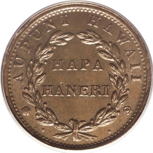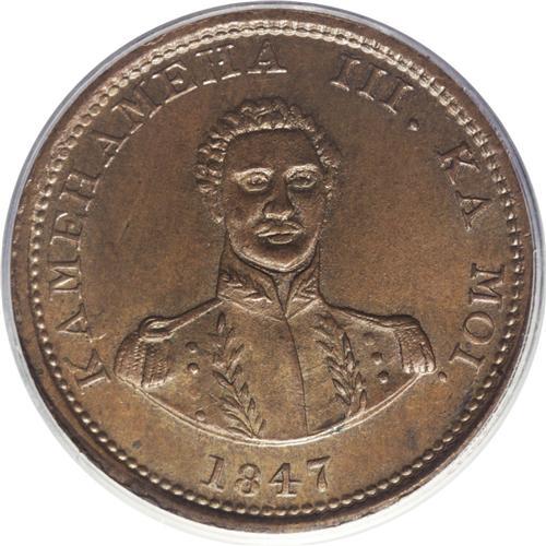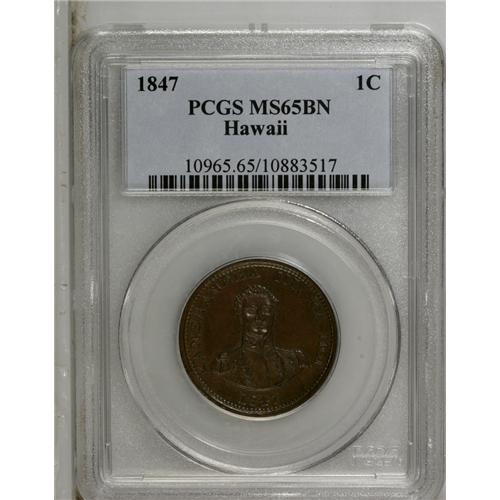 1847 1C Hawaii Cent MS65 Brown PCGS. Plain 4, 13 berri