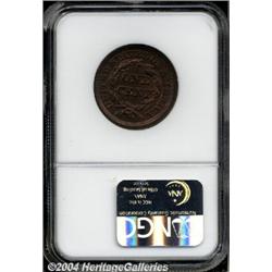 <B>1847<1C> MS64 Red and Brown NGC.</B></I> N-22, High R.3. Die State C. This well struck near-Gem has alternating deep orange-gold and lavender patina. Well struck for the type, and lovingly preserved. As of (4/04), NGC has certified five examples as Newcomb-22, and the present coin is the sole Red and Brown piece. <BR><BR><B>Important notice:</B> Heritage usually auctions material at the rate of 200-250 lots per hour. On some occasions eBay Live bid software or the Internet may not be able to keep up with the pace of the auction. We recommend placing a realistic absentee bid now as insurance to avoid disappointment. Occasionally the auctioneer may eliminate or reject an eBay Live bid, and the auctioneer may also reopen a lot after the close of the eBay live bidding (usually because we missed an audience bid), and may reject your bid even if it shows you as the winning bidder. By bidding via eBay Live, you agree that Heritage may award the lot to another bidder at its sole discretion under the circumstances described above or any other reasonable circumstances. Since eBay bids are not shown to us until we open the lot on the floor, we treat those bids just like floor bids. In most cases the floor responds before the eBay bid is presented to us, due to Internet lag time, so for consistency we have made it a policy that floor bids are always considered first over tie eBay live bids. Also please note that all Heritage lots purchased through eBay Live carry a 20% Buyer's Premium. Please make sure you read the Terms and Conditions before you bid.