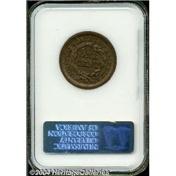 <B>1847<1C> MS65 Brown NGC.</B></I> N-24, R-1. Die State A. A well struck chocolate-brown Gem that has an unblemished obverse and a tiny tick or two on the central reverse. Thorough inspection reveals a couple of tiny green spots on the reverse. <BR><BR><B>Important notice:</B> Heritage usually auctions material at the rate of 200-250 lots per hour. On some occasions eBay Live bid software or the Internet may not be able to keep up with the pace of the auction. We recommend placing a realistic absentee bid now as insurance to avoid disappointment. Occasionally the auctioneer may eliminate or reject an eBay Live bid, and the auctioneer may also reopen a lot after the close of the eBay live bidding (usually because we missed an audience bid), and may reject your bid even if it shows you as the winning bidder. By bidding via eBay Live, you agree that Heritage may award the lot to another bidder at its sole discretion under the circumstances described above or any other reasonable circumstances. Since eBay bids are not shown to us until we open the lot on the floor, we treat those bids just like floor bids. In most cases the floor responds before the eBay bid is presented to us, due to Internet lag time, so for consistency we have made it a policy that floor bids are always considered first over tie eBay live bids. Also please note that all Heritage lots purchased through eBay Live carry a 20% Buyer's Premium. Please make sure you read the Terms and Conditions before you bid.