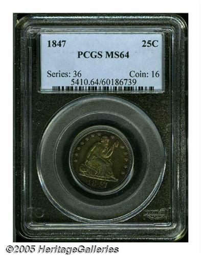 1847 25C MS64 PCGS. Even though 734,000 pieces we