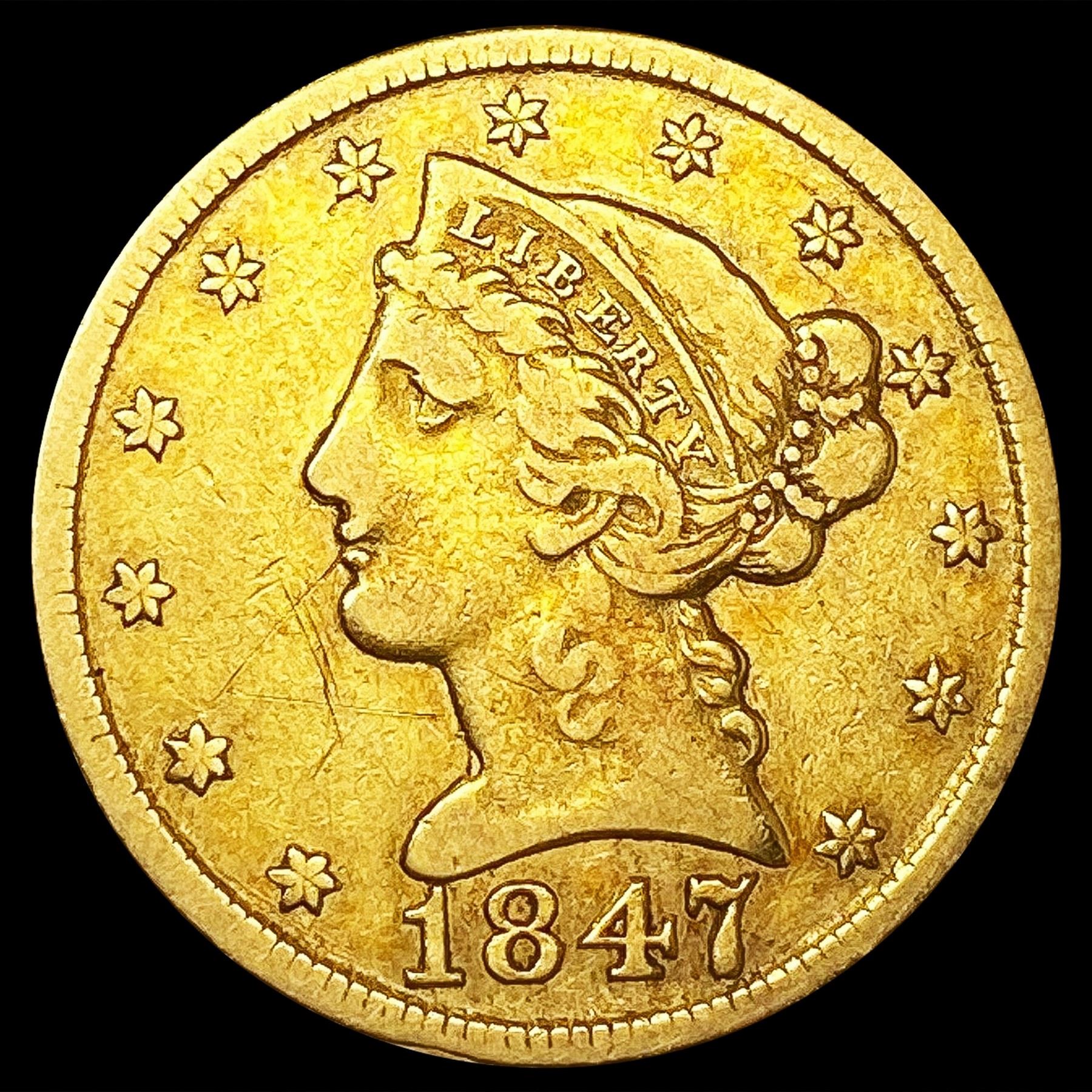 1847 $5 Gold Half Eagle NICELY CIRCULATED