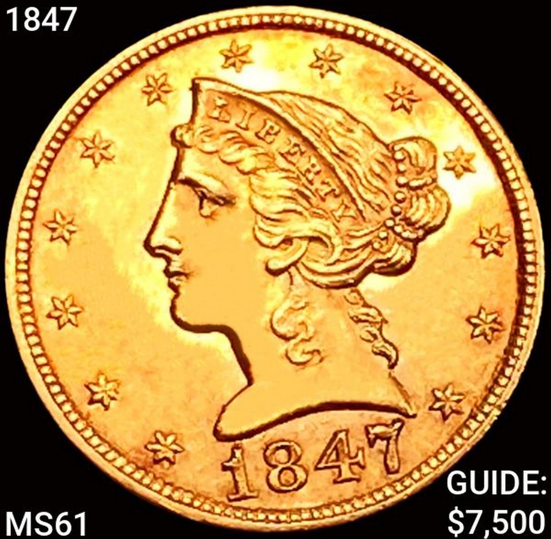 1847 $5 Gold Half Eagle UNCIRCULATED