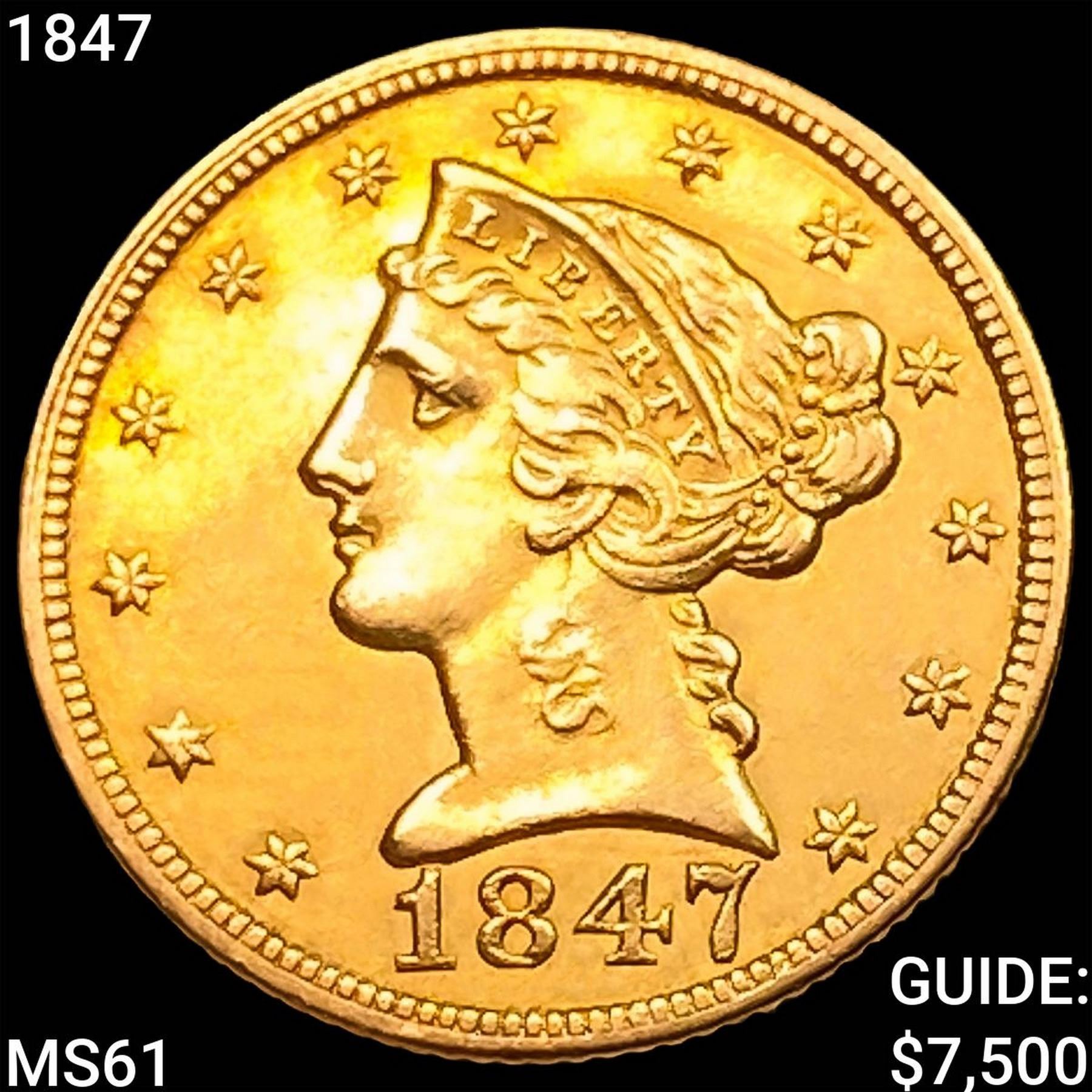 1847 $5 Gold Half Eagle UNCIRCULATED