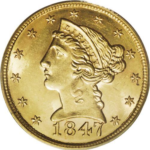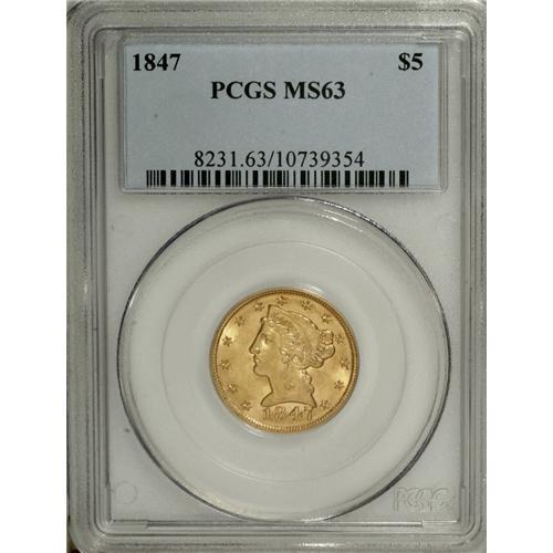 1847 $5 MS63 PCGS. For 19th century type collectors, f