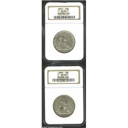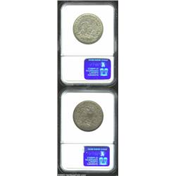 1847 50C AU58 NGC, sharply defined with streaky gray-russet patina over the mostly untoned steel-gray surfaces; and an 1869 AU58 NGC, well detailed with light wear and even gray toning over each side.From the Ohio Collection. 2 coins Important notice: We expect to be auctioning lots at the rate of 200-250 per hour. Sometimes eBay Premier live bid software cannot keep up with that pace, so we strongly recommend that you place a realistic proxy bid now as insurance to avoid disappointment. Also please note that all Heritage/CAA lots purchased through eBay Premier carry a 20% Buyer's Premium. Please make sure you read the Terms and Conditions.
