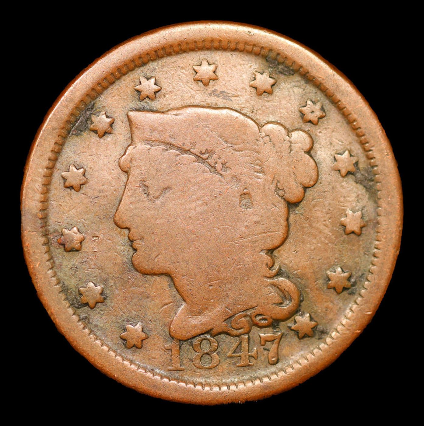 1847 Braided Hair Large Cent 1c Grades vg details.