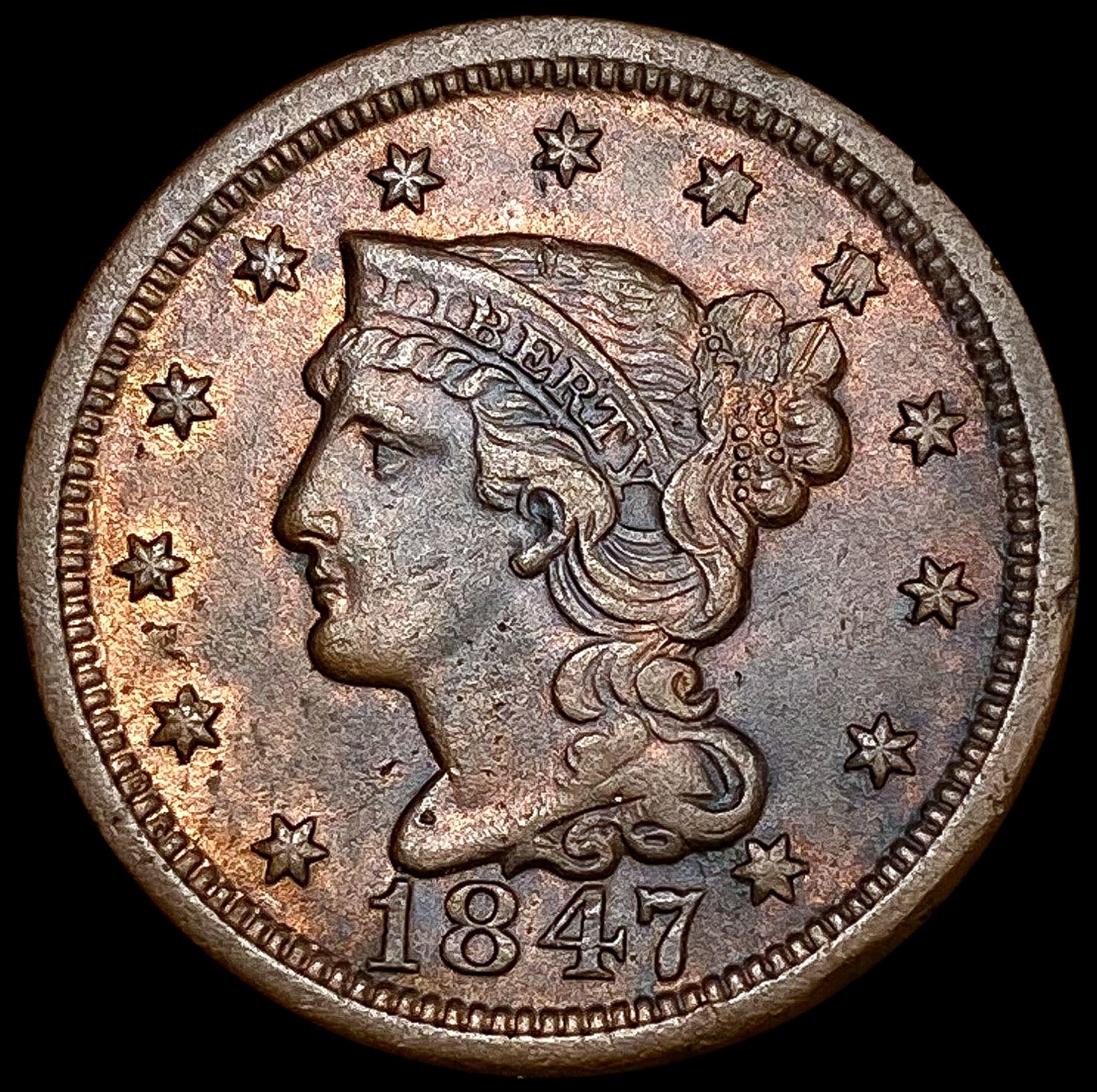 1847 Braided Hair Large Cent CLOSELY UNCIRCULATED