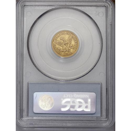 <B>1847-C $2 1/2 XF40 PCGS.</B></I> Variety 8-F. An attractively detailed mustard-gold Charlotte quarter eagle. Not fully struck, but wear is moderate for the grade. Some wispy parallel marks are noted on the right (facing) wing and on the reverse rim near 3 o'clock. Quite scarce; there are likely no more than a few hundred survivors from the mintage of 23,226 pieces.<BR><I>From The Carolina Gold Collection, Part Two.</B></I>