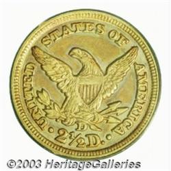 1847-D $2 1/2 MS60 PCGS. Variety 9-M. (per Doug Winter's second edition and revised attribution system). Earlier die state than the preceding coin with stronger remnants of the original punches to the left of the 47 in the date.RARITY INFORMATION: As mentioned above, there are an estimated eight to ten Uncirculated 1847-D quarter eagles known. The present example is notable for being the most original one that we have seen and probably the single nicest one that is available for under $10,000.STRIKE: This example is a bit less well struck than the MS64 1847-D just offered but it still shows very good detail for the issue. The obverse is quite well detailed while the reverse has some minor weakness on the eagle's right leg.SURFACES: It is difficult to fully view the surfaces of this piece as they are covered by deep coloration. With light magnification they appear to be quite clean for the grade and much more choice than usual for this date.LUSTER: A good deal of luster is present but it is obscured by the depth of the coloration. It appears that the luster is slightly grainy in its texture.COLORATION: The dark, completely original color of this coin is its best feature. Both sides have a very dark green-gold overtone with reddish-gold in the fields. This is what a 150+ year old gold coin looks like that has never been cleaned or dipped, and the color on this piece is as nice as on any Dahlonega quarter eagle that we have seen in some time. For the collector who appreciates complete, unabashed originality, this coin is a must-have.EYE APPEAL: This coin is totally original and has great eye appeal as a result. It is nicely detailed with clean surfaces and some luster below the superb, deep original color. Coins with this look are generally accorded a significant eye appeal among Dahlonega specialists. We refer to this appearance as "crusty" and there are very few remaining 19th century gold coins that have this look.COMPARABLES: It is difficult to provide comparables for this coin as nearly every PCGS or NGC MS60 or MS61 1847-D quarter eagle lacks the crusty appearance that this piece possesses.PEDIGREE: Obtained from Doug Winter in 2000. Formerly in the Winter Collection. Important notice: Heritage usually auctions material at the rate of 200-250 lots per hour. On some occasions eBay Live bid software or the Internet may not be able to keep up with the pace of the auction. We recommend placing a realistic absentee bid now as insurance to avoid disappointment. Occasionally the auctioneer may eliminate or reject an eBay Live bid, and the auctioneer may also reopen a lot after the close of the eBay live bidding (usually because we missed an audience bid), and may reject your bid even if it shows you as the winning bidder. By bidding via eBay Live, you agree that Heritage may award the lot to another bidder at its sole discretion under the circumstances described above or any other reasonable circumstances. Also please note that all Heritage lots purchased through eBay Live carry a 20% Buyer's Premium. Please make sure you read the Terms and Conditions before you bid.