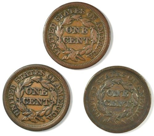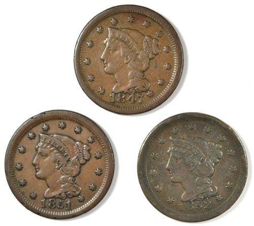 1847 F/VF, 1851 XF,AU & 1852 VF LARGE CENTS