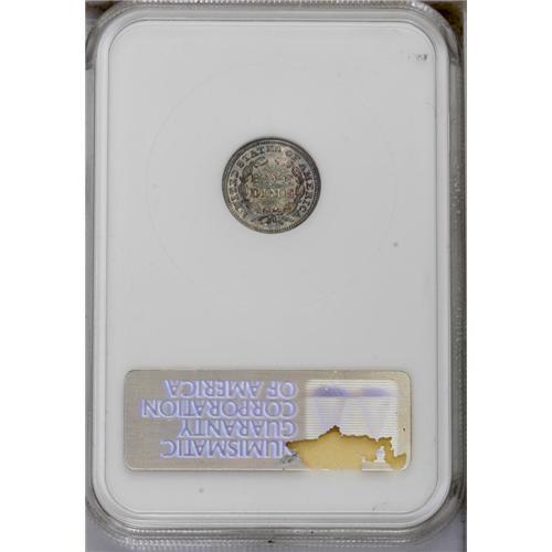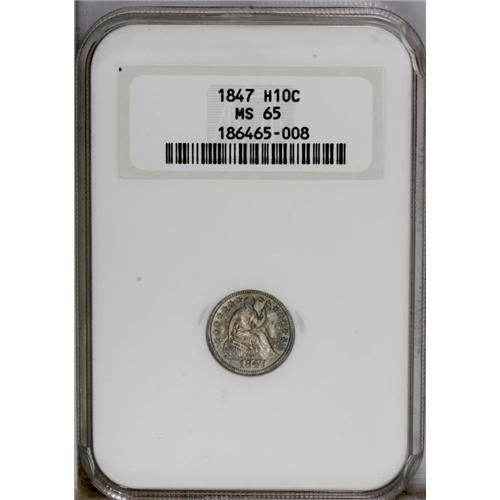 <B>1847<H10C> MS65 NGC.</B></I> This intricately struck and flashy Gem is refreshingly unabraded and displays salmon-pink and sea-green iridescence. Scarce in better Mint State grades. Census: 15 in 65, 12 finer (3/06). <BR><BR><B>Important notice:</B> Heritage usually auctions material at the rate of 200-250 lots per hour. On some occasions eBay Live bid software or the Internet may not be able to keep up with the pace of the auction. We recommend placing a realistic absentee bid now as insurance to avoid disappointment. Occasionally the auctioneer may eliminate or reject an eBay Live bid, and the auctioneer may also reopen a lot after the close of the eBay live bidding (usually because we missed an audience bid), and may reject your bid even if it shows you as the winning bidder. By bidding via eBay Live, you agree that Heritage may award the lot to another bidder at its sole discretion under the circumstances described above or any other reasonable circumstances. Since eBay bids are not shown to us until we open the lot on the floor, we treat those bids just like floor bids. In most cases the floor responds before the eBay bid is presented to us, due to Internet lag time, so for consistency we have made it a policy that floor bids are always considered first over tie eBay live bids. Also please note that all Heritage lots purchased through eBay Live carry a 20% Buyer's Premium. Please make sure you read the Terms and Conditions before you bid. This lot is being auctioned in conjunction with a live floor auction by Heritage Galleries & Auctioneers. All final auction and invoice information will be supplied by Heritage Galleries & Auctioneers, and all other information should be considered preliminary. Lot:1885 <BR><BR><B>Winning Notification and Billing:</B> After the FINAL session in this auction is complete, Heritage will send e-mail and snail mail invoices. This process normally takes several days. All final auction and invoice information will be supplied by Heritage Galleries & Auctioneers, and all other information should be considered preliminary. <BR><BR>This auction will be conducted on a live auction floor and over the Internet through eBay Live. If you choose to place an absentee bid, please take a moment to <font color='#0000ff'><u><a href='http://pages.ebay.com/liveauctions/help/before/laabsentee.html'>learn how eBay Live absentee bidding works</a></u></font><font color='#000000'>