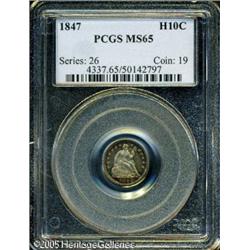 <B>1847 H10C MS65 PCGS.</B></I> Lustrous surfaces are bathed by multicolored toning. Sharply struck, with no mentionable marks to report. Population: 13 in 65, 8 finer (1/05). Lot:6125