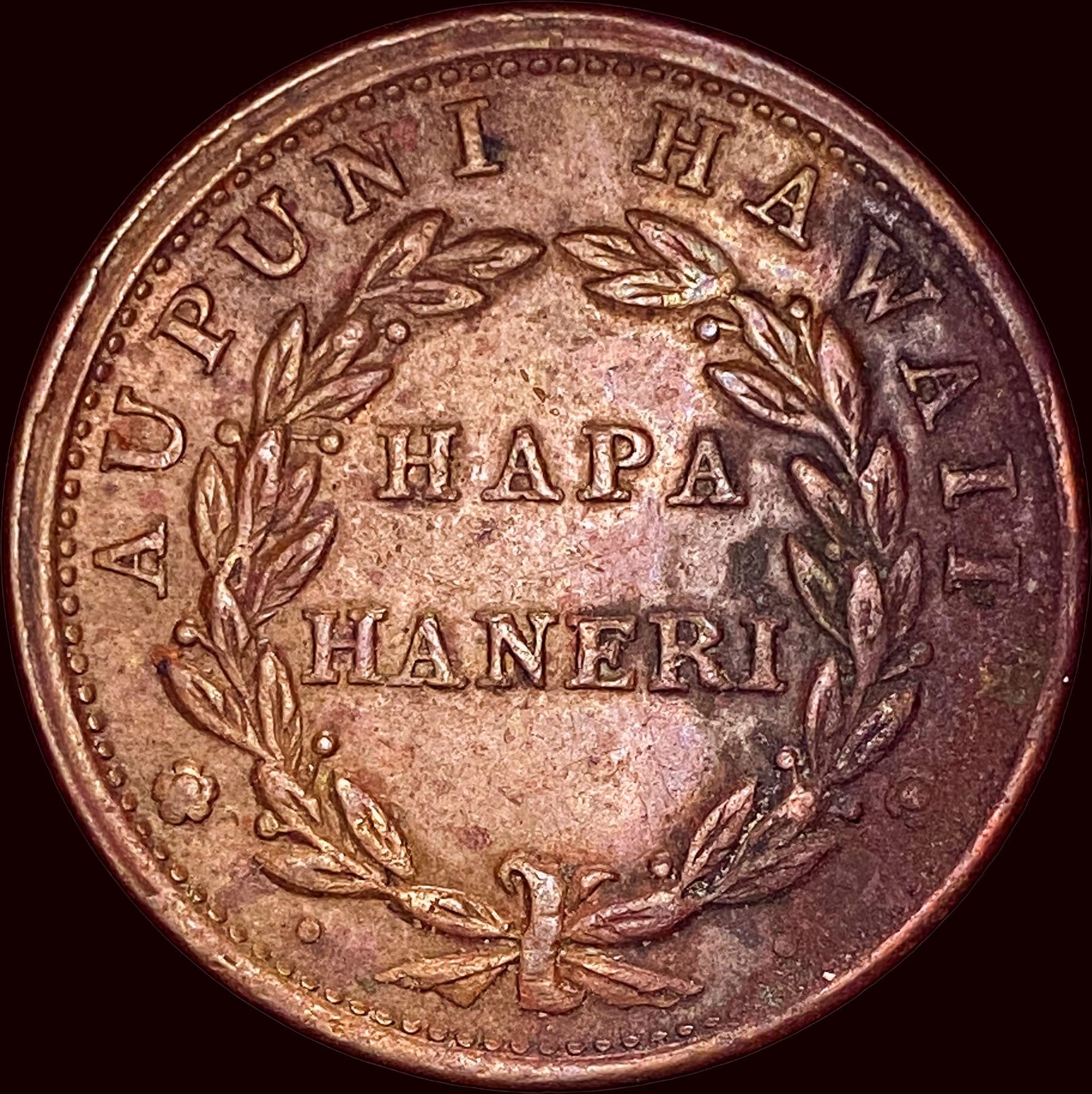 1847 Hawaii Copper Cent (Hapa Haneri) HIGH GRADE
